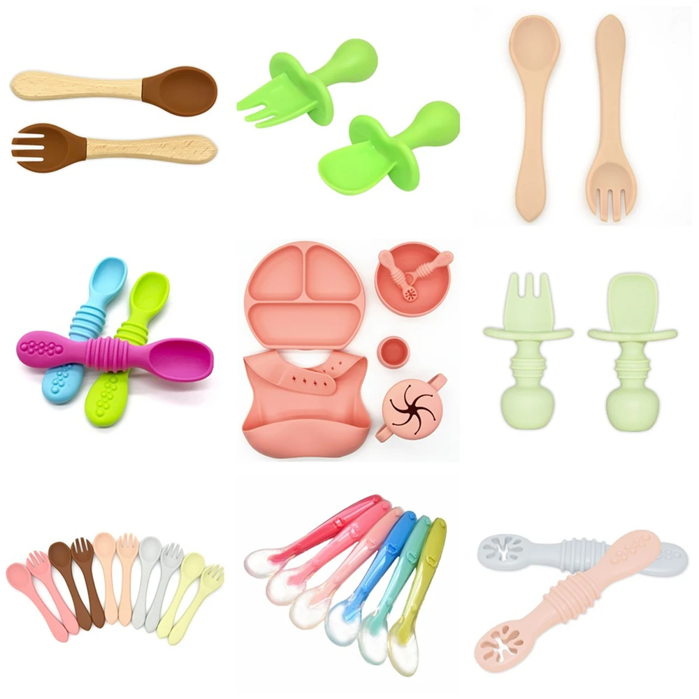 2025 First Stage Silicone Trainer Spoon 6+ Months Toddler Feeding Learning Utensils Baby Spoons Set BLW Teething Spoon Set