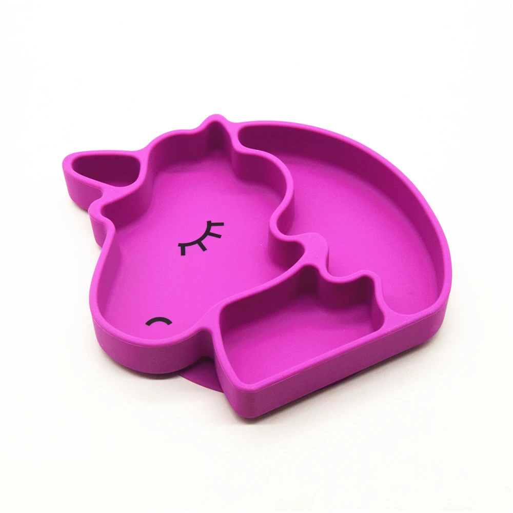 BPA Free Non-Toxic Durable Dishwasher Safe Grip Eco-Friendly BHD Silicone Big Sucker unicorn Baby Plate