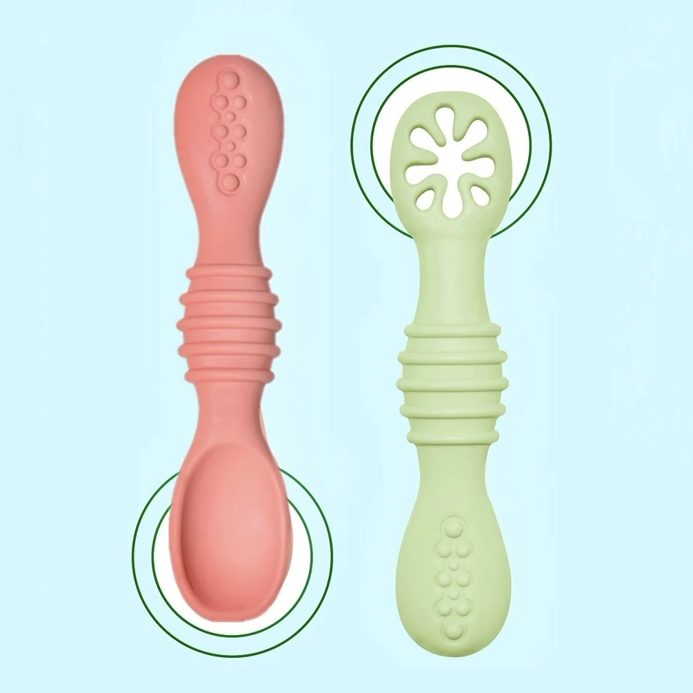 First Stage Silicone Trainer Pre-Spoon 6+ Months Toddler Feeding Learning Utensils Baby's First Spoons Set BLW Teething Spoon Set