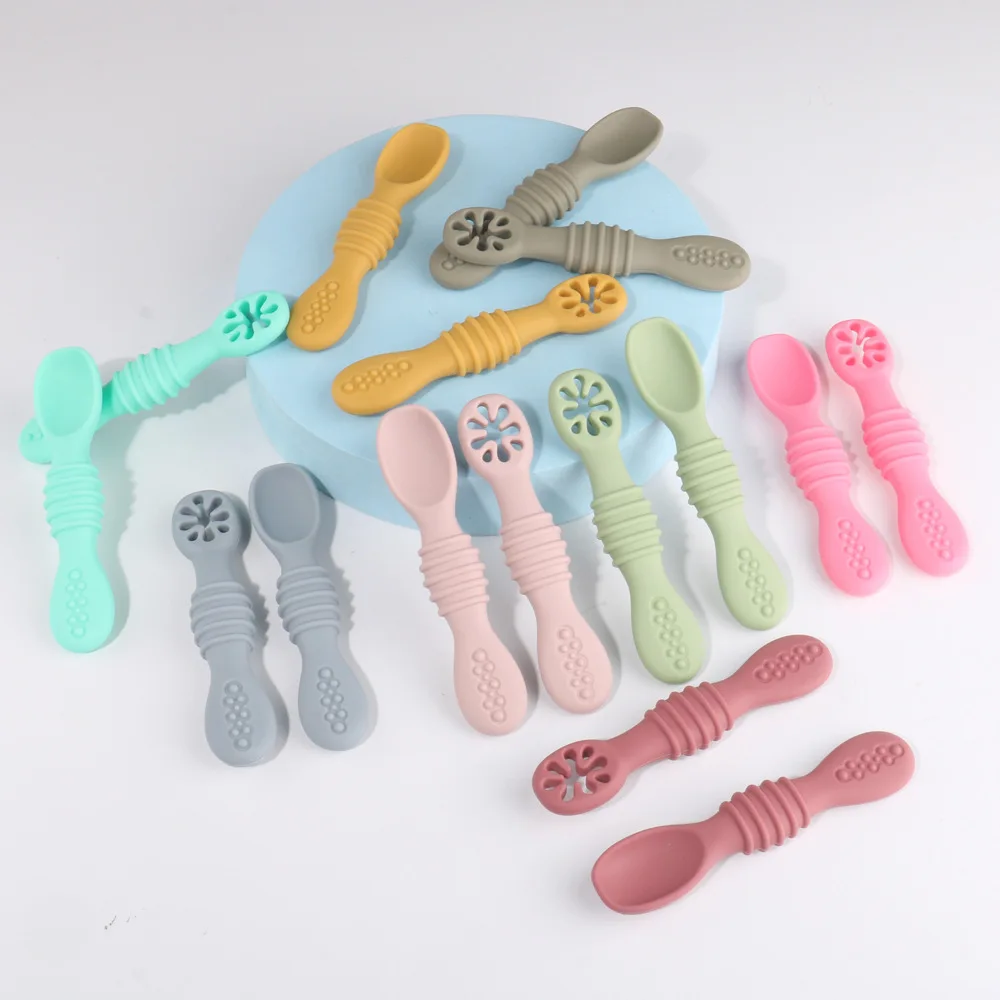 2025 First Stage Silicone Trainer Spoon 6+ Months Toddler Feeding Learning Utensils Baby Spoons Set BLW Teething Spoon Set