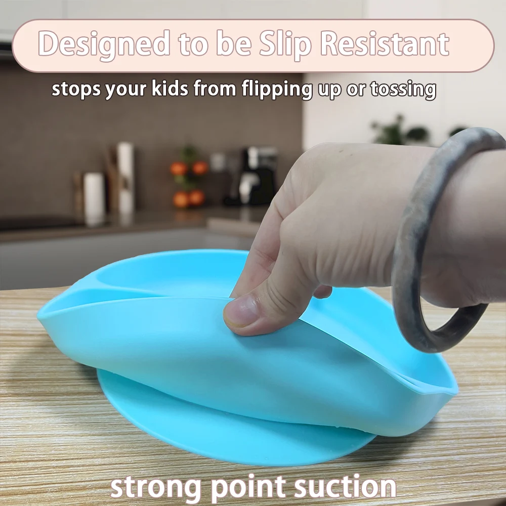 Customized Safety Reusable BPA Free Food Grade Soft and Elastic Silicone Baby Feeding Plate Silicone Divided Suction Plate